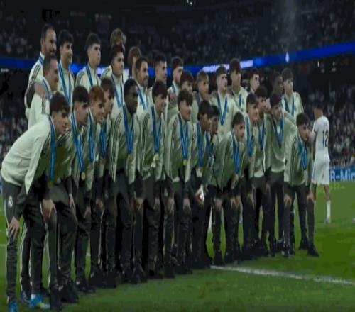 恭喜,昨天赢得欧青联冠军的皇马U19亮相伯纳乌
